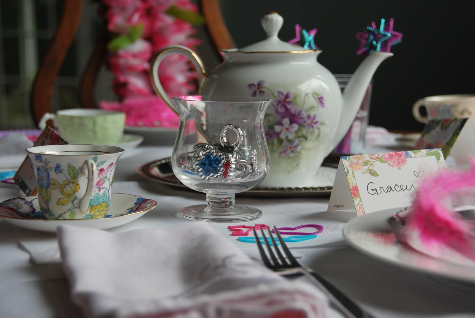 To recap: host your tea party with beautiful things, simple food, and have a “story piece” ready. While this looks elaborate, it really wasn’t. Colorful pops of bright pinks and purples from the fun items help create a look and feel that was super special. Sometimes, all it takes is a little festivity, and the party shows up!