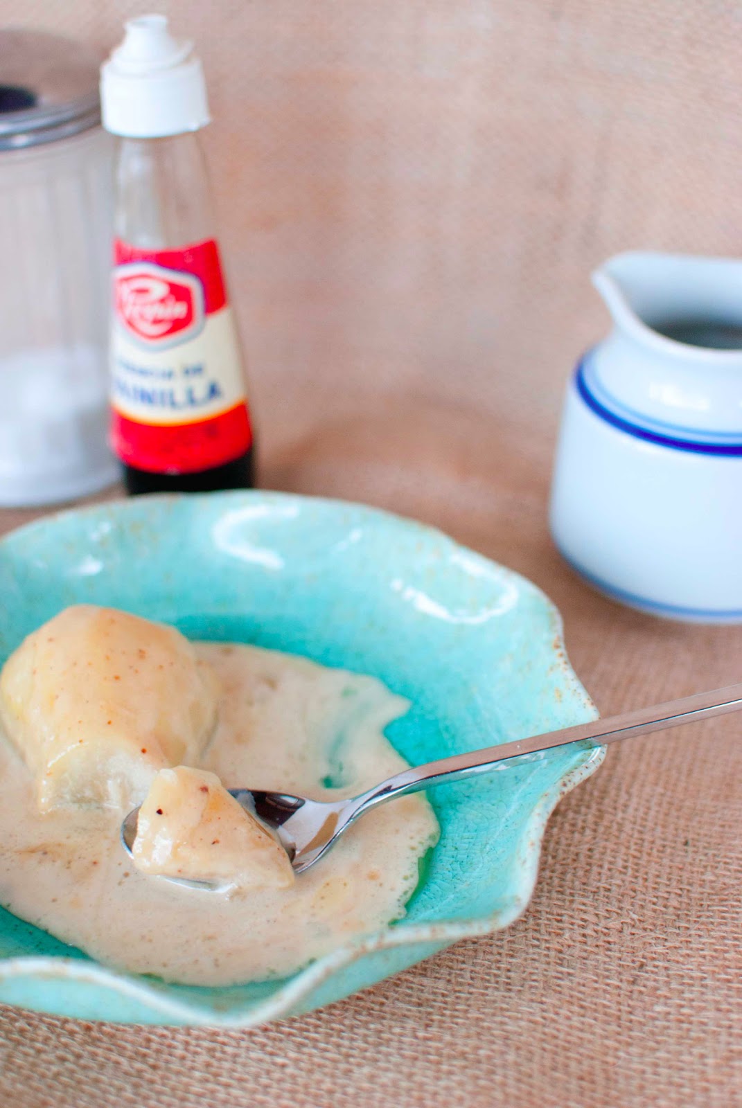 - While the pears are getting all warm and soft, mix your cream and extracts. I used a vanilla bean + almond extract. If you don’t have a vanilla bean, you can use plain vanilla!