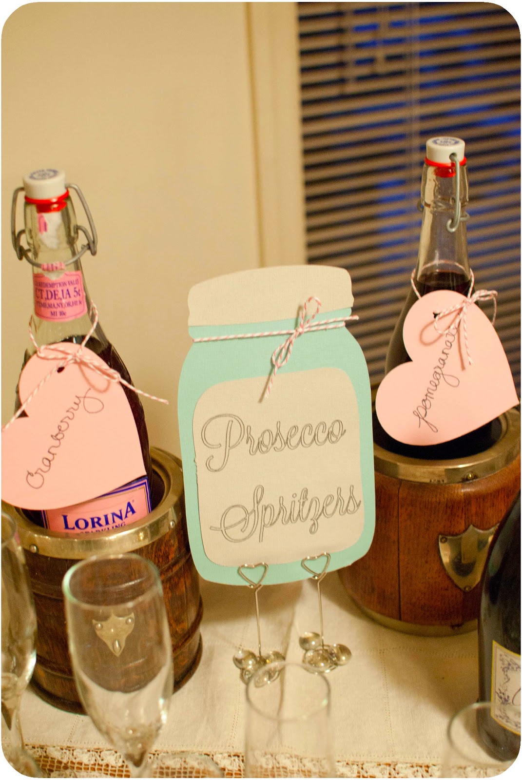I love mason jars, and Kate’s colors she is using for her wedding are reminiscent of vintage mason jars…. And, with Valentine’s Day just a couple days before, pink hearts had to be used!