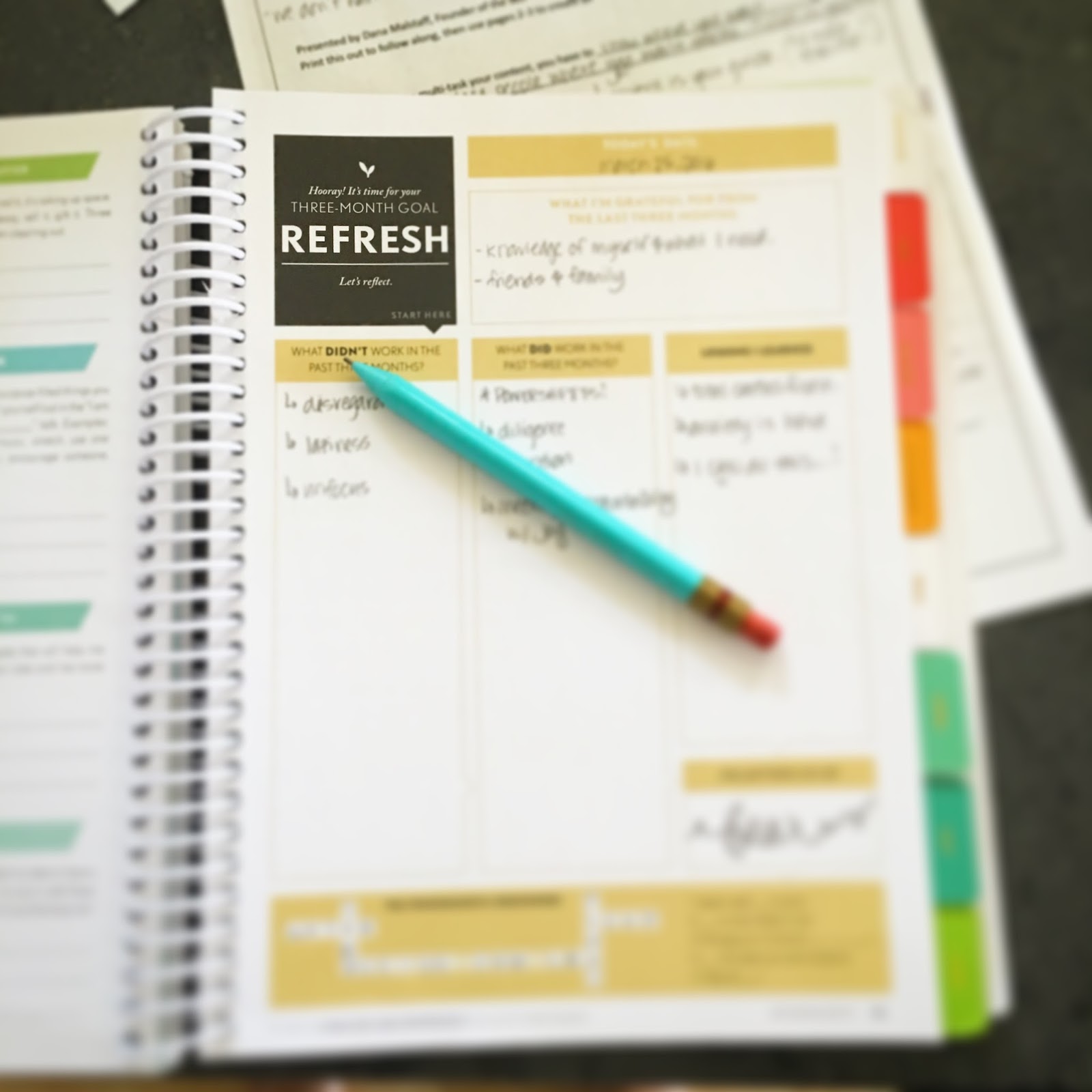 Every few months, Lara has designed a “Refresh” section — you go over what is working, what isn’t. What you want to change and how you are going to make that happen. This is the time you go over the goals you created at the beginning, you see what you need to change, and how you can make move towards your bigger goals, better.