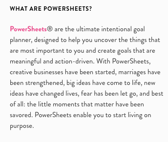 Lara Casey designed these great goal oriented worksheets, she likes to call PowerSheets.