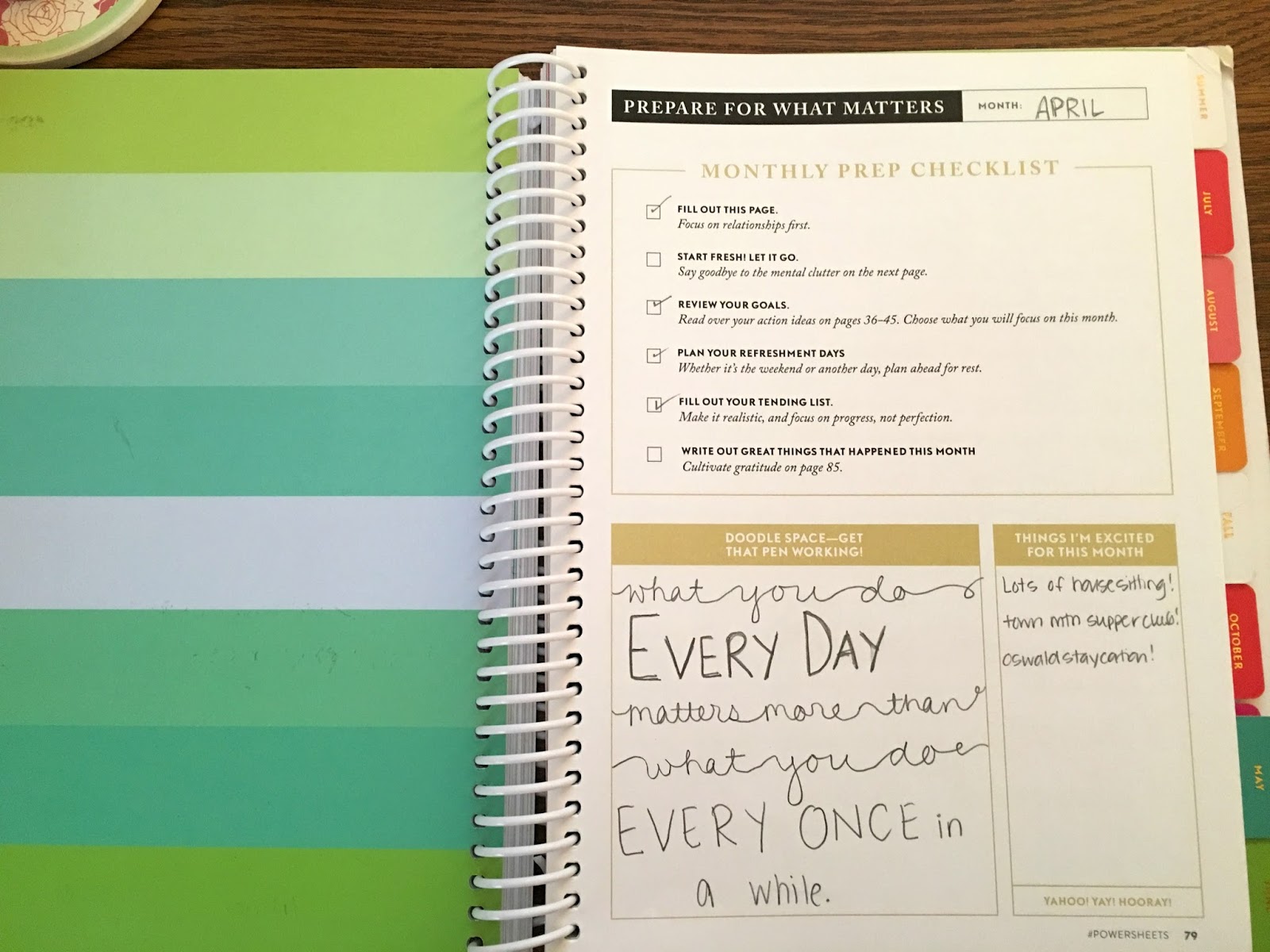 You begin the year with a hearty “get to me” section. I was *not* thrilled about this…. I abhor looking into my why’s and how’s, and don’t do well with accepting my.. we”ll call them *issues.* But! With the help of a close friend, I POWERED through, and learned so much about me!