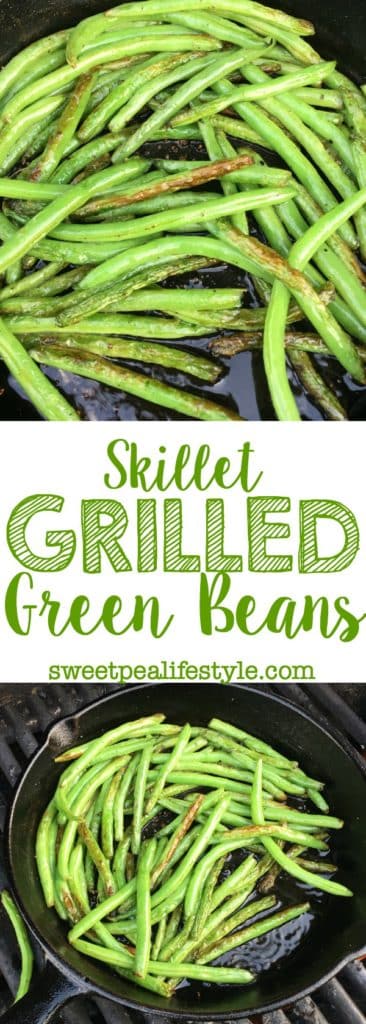 Easy green beans, grilled in a cast iron skillet for an easy summertime side dish!